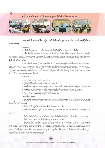 กิจกรรมหลักที่่� ๒ อบัรมให้ความรู้ความเข้้าใจเก่�ยวกับักฎหมาย ระเบั่ยบั และวิธ่การปฏิิบััติิงาน