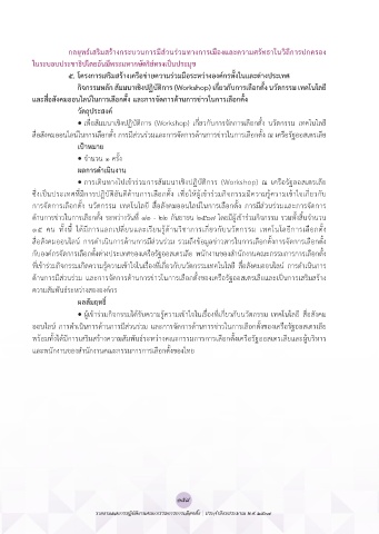 • เพื�อสัมีมีนาเชิงปฏิิบัตั้ิการ (Workshop) เกี�ยวุกับการจัด้การเลืือกตั้ั�ง นวุัตั้กรรมี เที่คัโนโลืยี