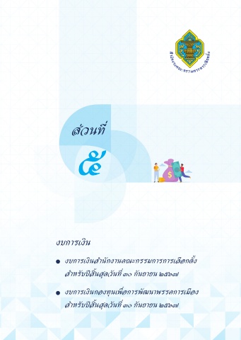สวนที่ ๕ งบการเงิน งบการเงินสำนักงานคณะกรรมการการเลือกตั้ง สำหรับปสิ้นสุดวันที่ ๓๐ กันยายน ๒๕๖๗ งบการเงินกองทุนเพื่อการพัฒนาพรรคการเมือง สำหรับปสิ้นสุดวันที่ ๓๐ กันยายน ๒๕๖๗