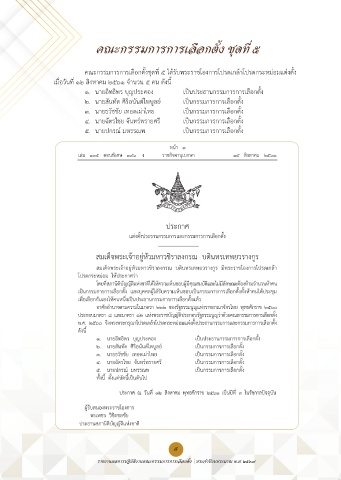 คณะกรรมการการเลี่ือกตั�งชุดท่� ๕ ได้รับพระราชโองการโป็รดเกลี่้าโป็รดกระหม่อมแต่งตั�ง