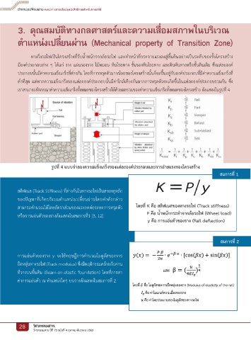 หรั้อการัแอ่นตััวัของรัางดีังแสดีงในสมการัท่ี�1 [3, 12] P คือ นำ�าหนักกระทำาจากล้อรถไฟ (Wheel load)