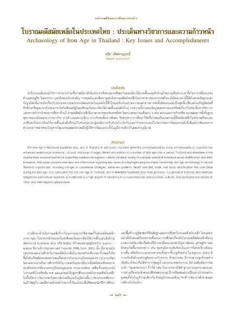 โบร�ณคดีสมัยเหล็กในประเทศไทย : ประเด็นท�งวิช�ก�รและคว�มก้�วหน้�