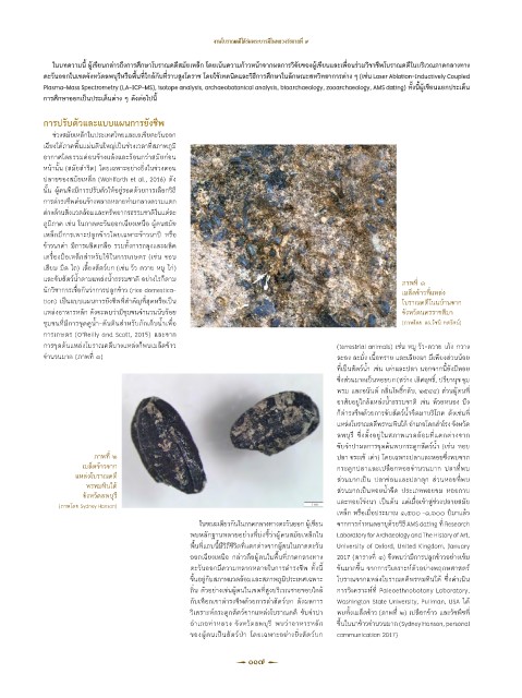 วิเคราะห์กระดูกสัตว์จากแหล่งโบราณคดี ซับจ�าปา พบทั้งเมล็ดข้าว (ภาพที่ ๒) เปลือกข้าว และวัชพืชที่
