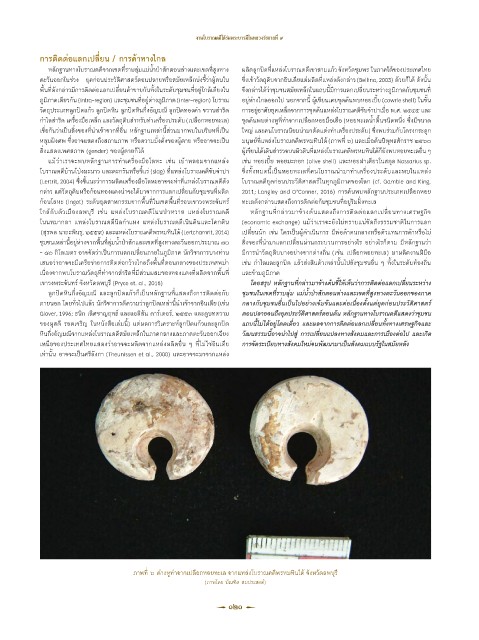 สิ่งแสดงเพศสภาพ (gender) ของผู้ตายก็ได้ ผู้เขียนได้เดินส�ารวจบนผิวดินที่แหล่งโบราณคดีพรหมทินใต้ก็ยังพบหอยทะเลอื่น ๆ