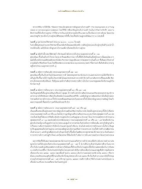 ประเด็นส�าคัญที่ได้จากการวิจัยคือ เมืองโบราณอู่ทองมีความเจริญสูงสุด ๒ ช่วงเวลา ได้แก่ ช่วงก่อนสมัยทวารวดี ประมาณ