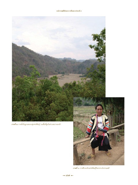 งานโบราณคดีใต้ร่มพระบารมีในหลวงรัชกาลที่ ๙ ภาพที่ ๒ การตั้งถิ่นฐานของกลุ่มชาติพันธุ์ บนพื้นที่สูงในอ�าเภอปางมะผ้า ภาพที่ ๓ การศึกษาด้านชาติพันธุ์วิทยาทางโบราณคดี 167 ๑๖๗