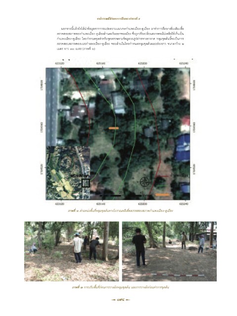 ภาพที่ ๗ การปรับพื้นที่ก่อนการวางผังหลุมขุดค้น และการวางผังก่อนท�าการขุดค้น