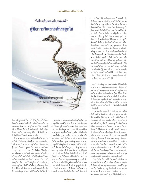 กระดูกไก่” ขึ้นมา เพื่อใช้เป็นคู่มือส�าหรับการจ�าแนก และวัดขนาด เพื่อใช้ข้อมูลดังกล่าวยืนยันความแตก สุกรและสัตว์ประเภทอื่น ๆ อย่างต่อเนื่อง สามารถสกัด