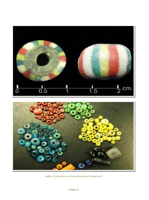 งานโบราณคดีใต้ร่มพระบารมีในหลวงรัชกาลที่ ๙ ภาพที่ ๒ - ๕ ลูกปัดแก้วจากแหล่งโบราณคดีเนินพลับพลา จังหวัดสุพรรณบุรี 241 ๒๔๑