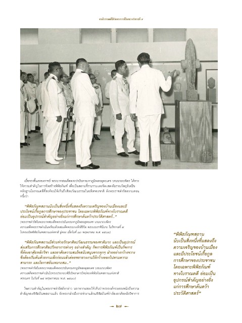 ส�าคัญของพิพิธภัณฑสถานแล้ว ยังทรงกล่าวถึงการท�างานด้านพิพิธภัณฑ์ว่าต้องอาศัยหลักวิชาการ ประวัติศาสตร์”