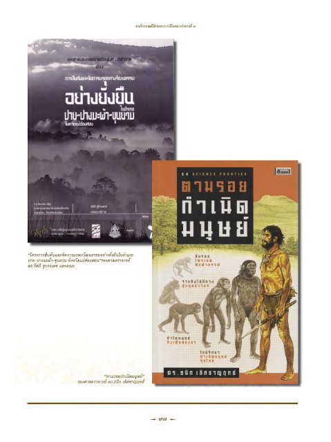 งานโบราณคดีใต้ร่มพระบารมีในหลวงรัชกาลที่ ๙ “โครงการสืบค้นและจัดการมรดกวัฒนธรรมอย่างยั่งยืนในอ�าเภอ ปาย-ปางมะผ้า-ขุนยวม จังหวัดแม่ฮ่องสอน”รองศาสตราจารย์ ดร.รัศมี ชูทรงเดช และคณะ “ตามรอยก�าเนิดมนุษย์” รองศาสตราจารย์ ดร.ธนิก เลิศชาญฤทธ์ 97 ๙๗