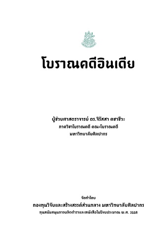 โบราณคดีอินเดีย ผู้ช่วยศาสตราจารย์ ดร.จิรัสสา คชาชีวะ ภาควิชาโบราณคดี คณะโบราณคดี มหาวิทยาลัยศิลปากร จัดทําโดย กองทุนวิจัยและสร้างสรรค์ส่วนกลาง มหาวิทยาลัยศิลปากร ทุนสนับสนุนการผลิตตําราและหนังสือในปีงบประมาณ พ.ศ. 2558