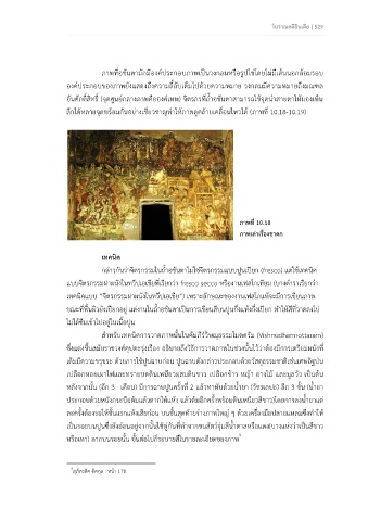 ขณะที่พื้นผิวยังเป ยกอยู่ แต่งานในถ้ําอชันตาเป็นการเขียนสีบนปูนกึ่งแห้งกึ่งเป ยก ทําให้สีที่วาดลงไป