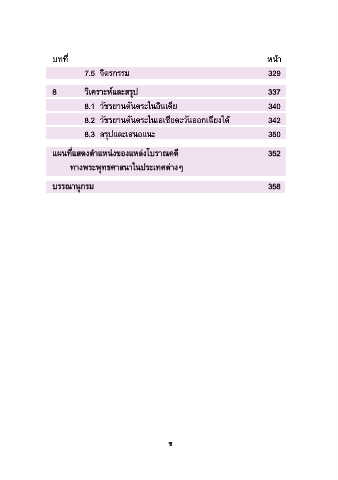 บทที่ หน้า 7.5 จิตรกรรม 329 8 วิเคราะห์และสรุป 337 8.1 วัชรยานตันตระในอินเดีย 340 8.2 วัชรยานตันตระในเอเชียตะวันออกเฉียงใต้ 342 8.3 สรุปและเสนอแนะ 350 แผนที่แสดงต าแหน่งของแหล่งโบราณคดี 352 ทางพระพุทธศาสนาในประเทศต่างๆ บรรณานุกรม 358 ช