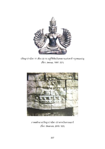 ปรัชญาปารมิตา 11 เศียร 22 กร อยู่ที่พิพิธภัณฑสถานแห่งชาติ กรุงพนมเปญ (ที่มา: Jessup, 1997: 321) ภาพสลักนางปรัชญาปารมิตา ปราสาทบันทายฉมาร์ (ที่มา: Sharrock, 2015: 121) 207