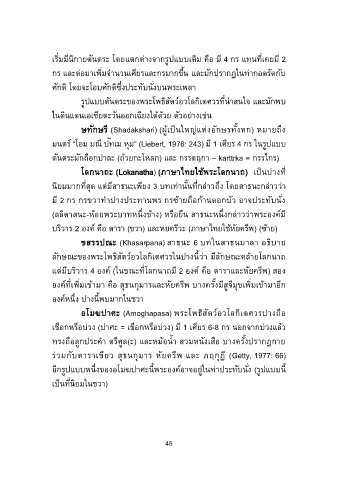 มนตร์ “โอม มณี ปทเม หุม” (Liebert, 1976: 243) มี 1 เศียร 4 กร ในรูปแบบ