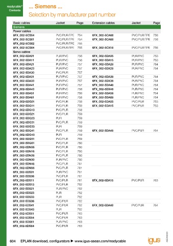 6FX_002-5CS61 PVC/PUR/TPE 754 6FX_002-5CA68 PVC/PUR/TPE 756 6FX_002-8QN11 PUR 765 6FX_002-8QE11 PUR 765