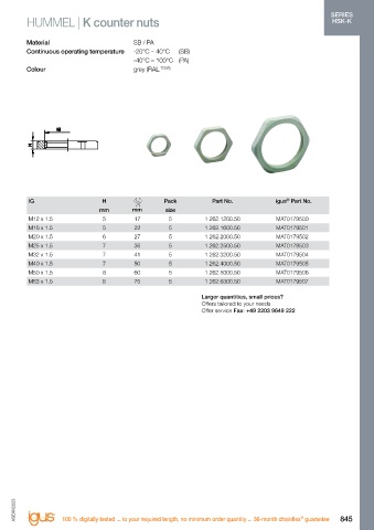 AG GL H Pack Part No. igus Part No. IG H Pack Part No. igus Part No.