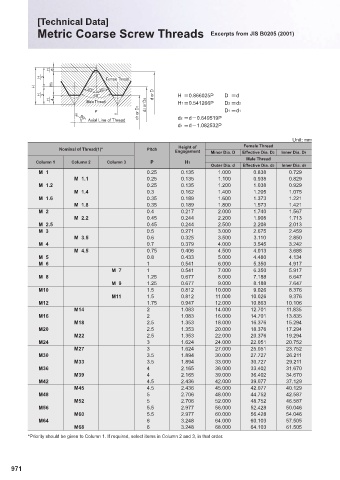Metric Coarse Screw Threads Excerpts from JIS B0205 (2001)