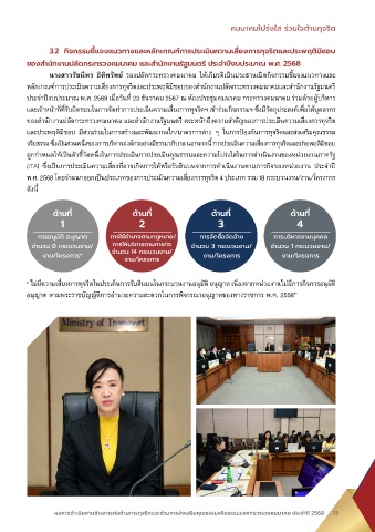 ผลการดำาเนินงานด้านการต่อต้านการทุจริตและด้านการส่งเสริมคุณธรรมจริยธรรมของกระทรวงคมนาคม ประจำาป ี 2568 15