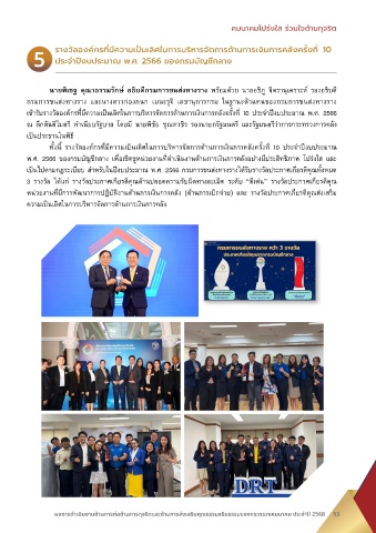 เป็นไปตามกฎระเบียบ สำาหรับในปีงบประมาณ พ.ศ. 2566 กรมการขนส่งทางรางได้รับรางวัลประกาศเกียรติคุณทั้งหมด