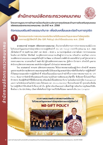 Page 8 - ผลการดำเนินงาน ด้านการต่อต้านการทุจริตและด้านการส่งเสริมคุณธรรมจริยธรรมของกระทรวงคมนาคม ประจำปี 2568