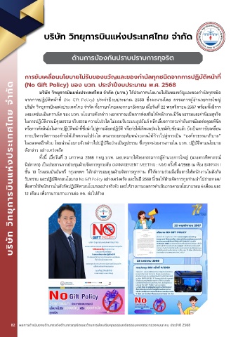 บริษัท วิทยุการบินแห่งประเทศไทย จ�ากัด (บวท.) ได้ประกาศนโยบายไม่รับของขวัญและของกำานัลทุกชนิด
