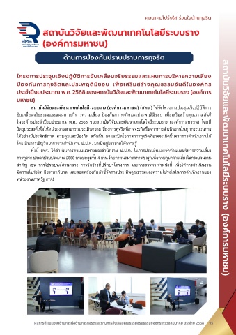 การทุจริต ประจำาปีงบประมาณ 2568 ครอบคลุมทั้ง 4 ด้าน โดยกำาหนดมาตรการเชิงรุกเพื่อควบคุมความเสี่ยงในกระบวนงาน