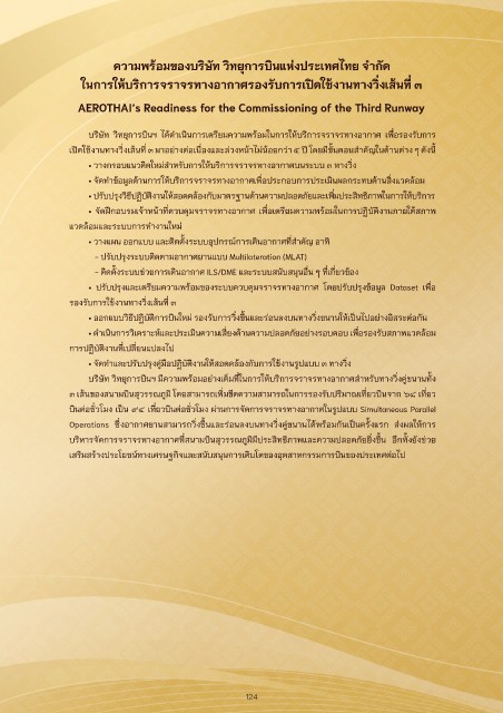 บริษัท วิทยุการบินฯ ได้ดำาเนินการเตรียมความพร้อมในการให้บริการจราจรทางอากาศ เพือรองรับการ