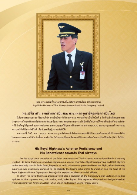 ในโอกาสครบรอบ ๕๐ ปี ของบริษัท การบินไทย จำากัด (มหาชน) พระองค์ทรงเป็ นนักบินที ๑ ในเทียวบินพิเศษมหากุศล