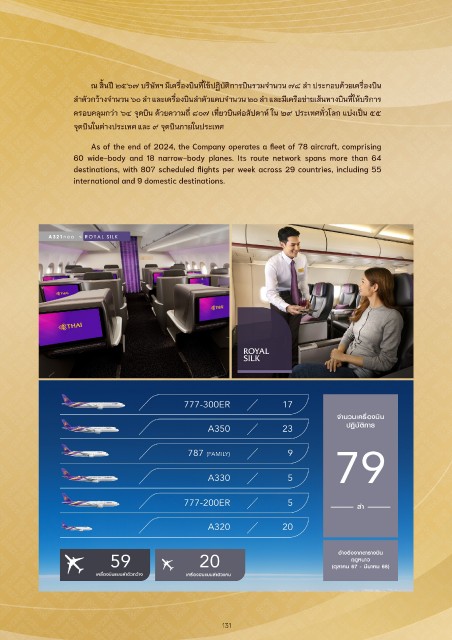 ลำาตัวกว้างจำานวน ๖๐ ลำา และเครืองบินลำาตัวแคบจำานวน ๒๐ ลำา และมีเครือข่ายเส้นทางบินทีให้บริการ
