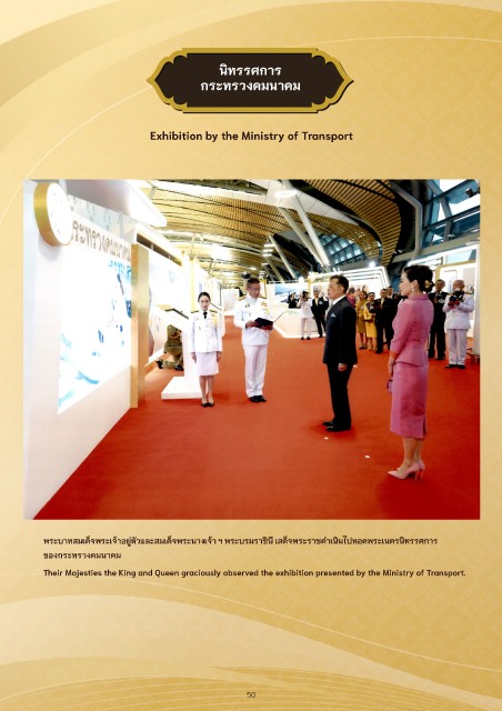 Their Majesties the King and Queen graciously observed the exhibition presented by the Ministry of Transport.