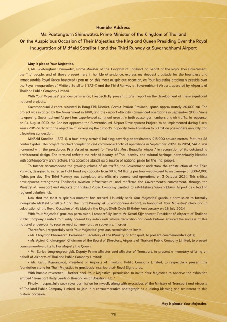 inaugurate Midfield Satellite 1 and the Third Runway at Suvarnabhumi Airport, in honour of Your Majesties’ glory and in