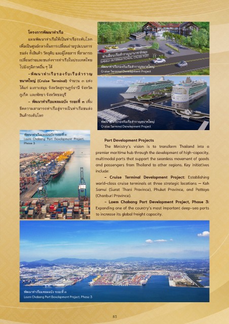 ไปยังภูมิภาคอืน ๆ ได้ พัฒนาท่าเรือรองรับเรือสำาราญขนาดใหญ่