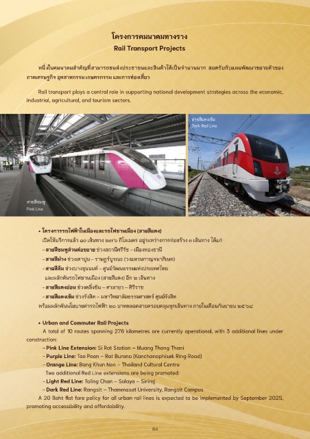 และผลักดันรถไฟชานเมือง (สายสีแดง) อีก ๒ เส้นทาง
