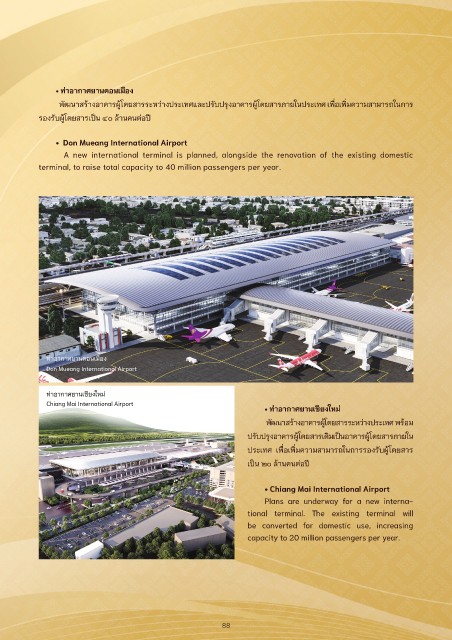 พัฒนาสร้างอาคารผู้โดยสารระหว่างประเทศและปรับปรุงอาคารผู้โดยสารภายในประเทศ เพือเพิมความสามารถในการ