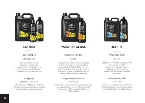 เปลี่ยนการล้างรถของคุณให้เป็นประสบการณ์ที่น่าพอใจ Wash ‘N’ Gloss แชมพูที่รวบรวมสารทําความสะอาดประสิทธิภาพสูง Rapid Rinse-less Wash คือ นํ้ายาล้างรถสูตรใหม่ล่าสุด