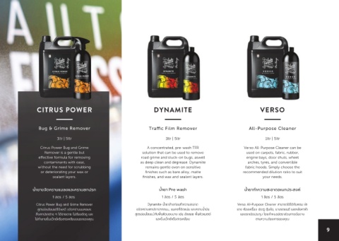 สิ่งสกปรกต่าง ๆ ได้ง่ายดาย ไม่ต้องขัดถู และ สูตรอ่อนโยนแม้กับพื้นผิวบอบบาง เช่น อัลลอย พื้นผิวแมตต์ ของรถเปิดประทุน โดยกําหนดอัตราส่วนการเจือจาง