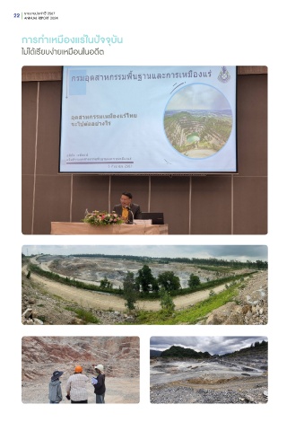 22 รายงานประจำปี 2567 ANNUAL REPORT 2024 การทำเหม้อุงแร่ในปีัจัจัุบัน ไม่ได้้เร้ียบง่ายเหมือนในอด้ีตั