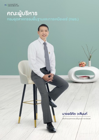 70 รายงานประจำปี 2567 ANNUAL REPORT 2024 คณีะผิู้บริหาร กรมอุุตสาหกรรมพื้้�นฐานและการเหม้อุงแร่ (กพื้ร.) นายอุดิทุัต วะส่นนทุ์ อุธิบด็ีกรมอุุตสาหกรรมพื้้�นฐานและการเหม้อุงแร่
