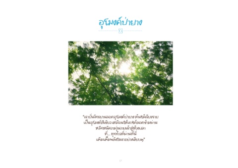 อิุโมังค์ป่ายุาง “เราปั�นจุักรยุานลอิดอิุโมังค์ป่ายุาง ต้นไมั้เร่ยุงรายุ เป็นอิุโมังค์ส่เข่่ยุว เหมัือินให้เราได้ลอิดข่้ามัผู้่าน หล่กหน่ความัวุ่นวายุเข่้าส่่ห้วงเวลา ที่่�….. ทีุ่กก้าวที่่�ผู้่านที่่�น่� เติมัเต็มัพีลังใจุเราอิยุ่างเง่ยุบๆ” 17